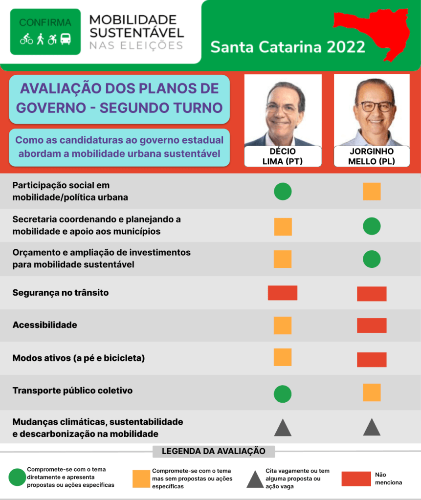 A Coordenação Estadual da Campanha realizou a avaliação dos Planos de Governo das candidaturas ao Governo do Estado que passaram para o segundo turno das eleições. A avaliação permitiu conhecer as propostas originais elaboradas pelos próprios candidatos a respeito da mobilidade sustentável. Os Planos foram registrados pelas respectivas candidaturas no Tribunal Superior Eleitoral.